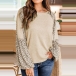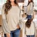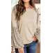 Fashion Leopard Spliced Lantern Sleeve Round Neck Loose Knit Top