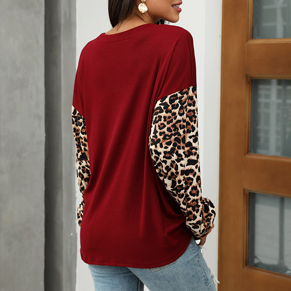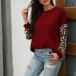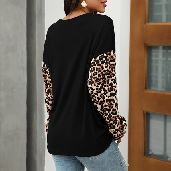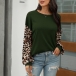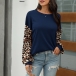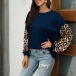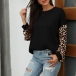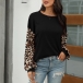 Fashion Leopard Spliced Lantern Sleeve Round Neck T-shirt