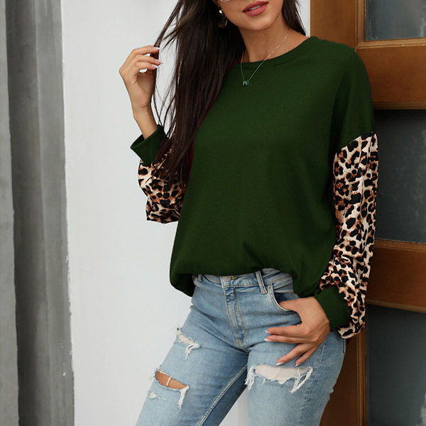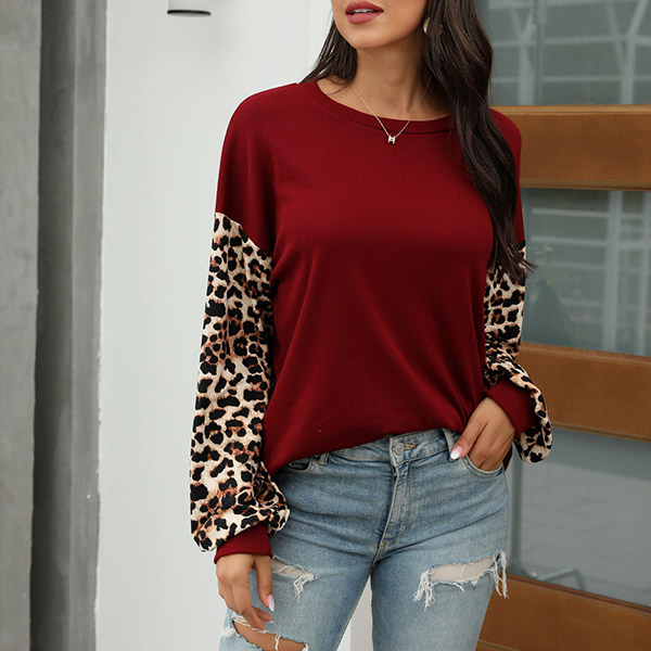 This t-shirt that combines of simple,cozy and stylish vibes is worth to arouse your attention. What makes this piece look so stylish and attractive? It owes to the leopard spliced lantern sleeve design. Moreover,its soft and breathable fabric can ensure you a comfortable day. For your casual weekends and off-duty days,this t-shirt can be your wise choice.