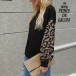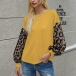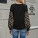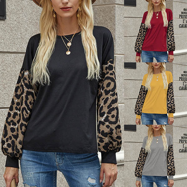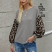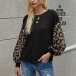 Fashion Leopard Spliced Lantern Sleeve Round Neck T-shirt