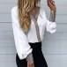 For a delicate and stylish working look,you can just have a try this blouse. What makes this piece look so attractive? It owes to the leopard details at the cuff and neckline part. Meanwhile,its soft,breathable fabric can give you a comfortable day. Finished with lantern sleeve,v-neck and a loose silhouette,this wonderful piece is worth to be your wise investment.