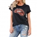 Fashion Leopard Spliced Lip Pattern Ripped T-shirt