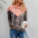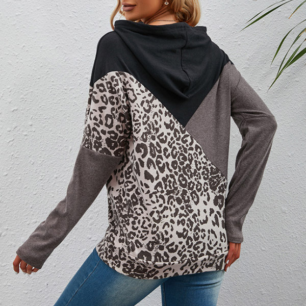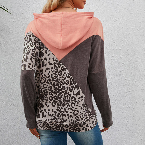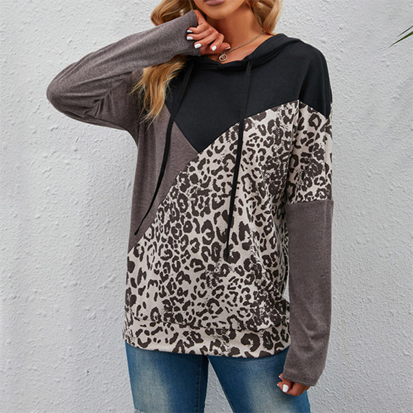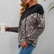 Fashion Leopard Spliced Long Sleeve Hooded Contrast Color Sweatshirt