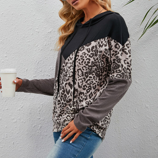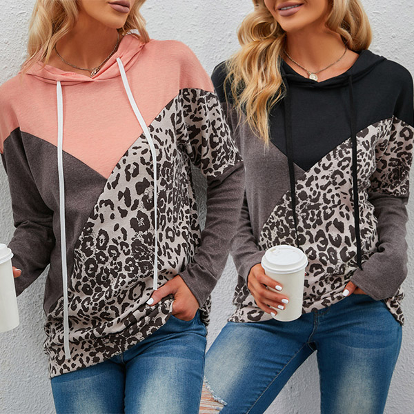 Wanna a laid-back,casual yet fashionable autumn look? Then this sweatshirt can be your perfect solution. The contrast color element and leopard details will make this piece look more stylish and attractive. Finished with long sleeve,hooded and a loose silhouette,this sweatshirt also can give you a comfortable day.
