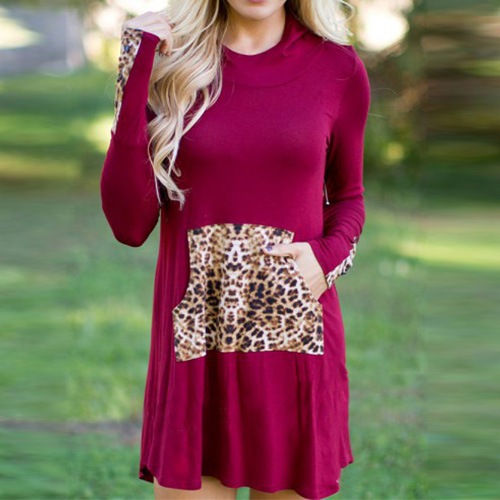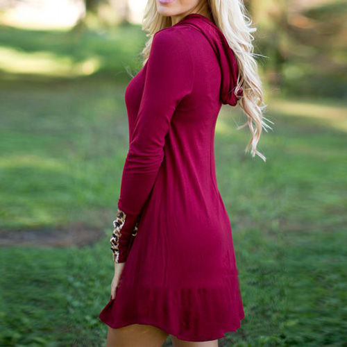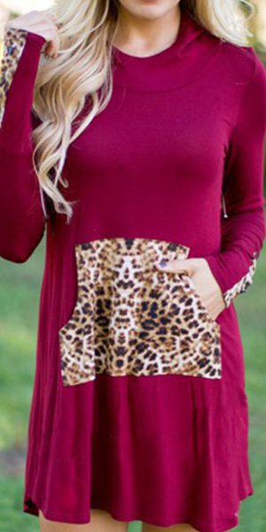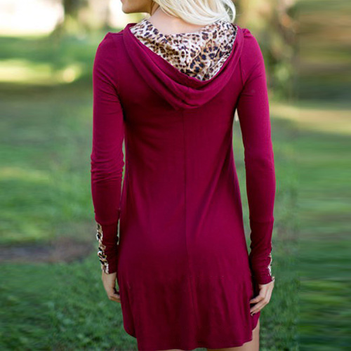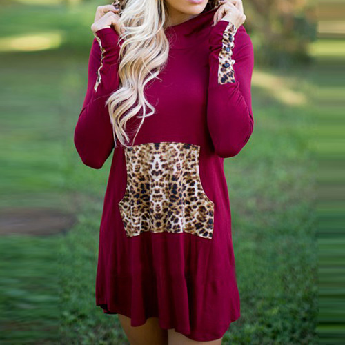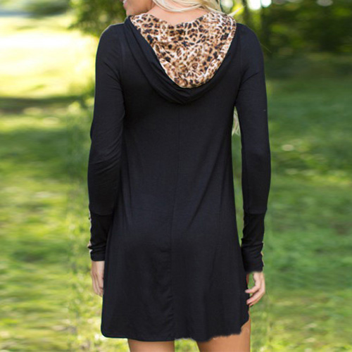 Fashion Leopard Spliced Long Sleeve Hooded Dress