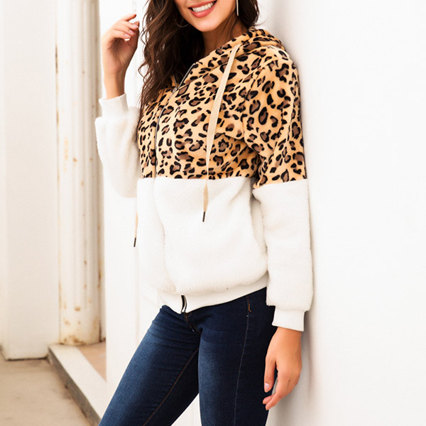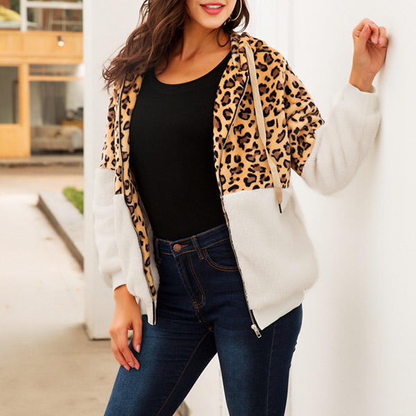 It is a good choice to slip into this plush coat when the days get cold. The plush fabric and hooded silhouette design can ensure you a warm and comfortable day,while the leopard spliced details will make it look more attractive. Give your wardrobe a seasonal update by adding this coat.