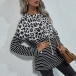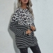 Fashion Leopard Spliced Long Sleeve Hooded Striped T-shirt