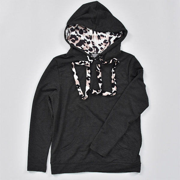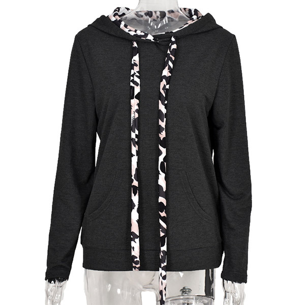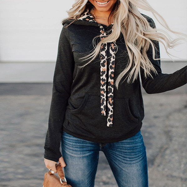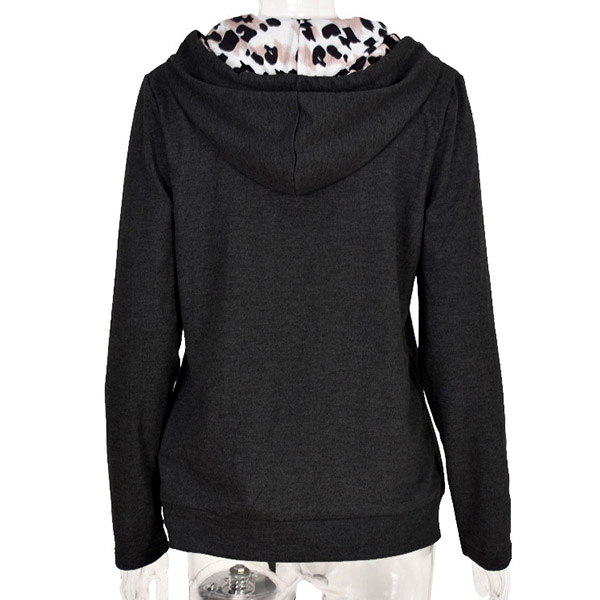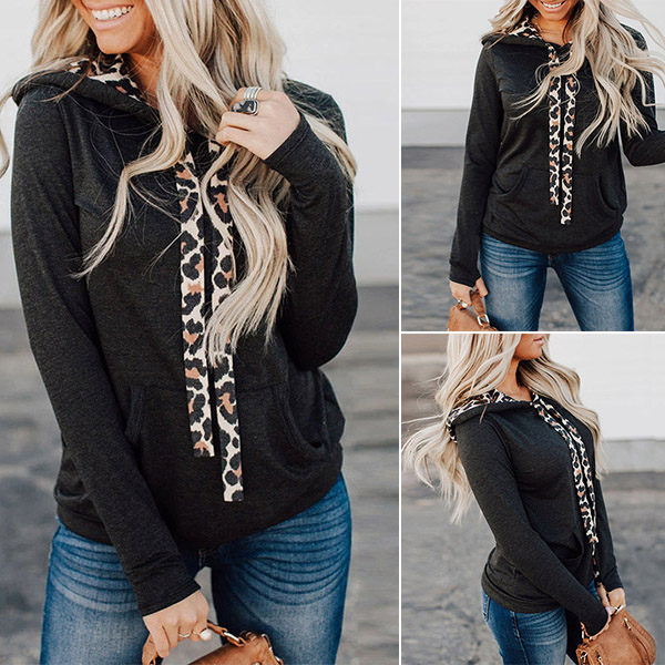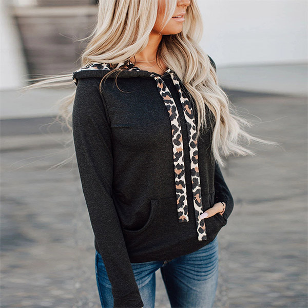 The most warm and stylish piece in autumn and winter must be the sweatshirt, not only super warm and windproof, but also looks very fashionable. This solid color piece comes with long sleeve and finished with hood and drawstring which are designed with printed leopard, which make the depressing days full of vitality!