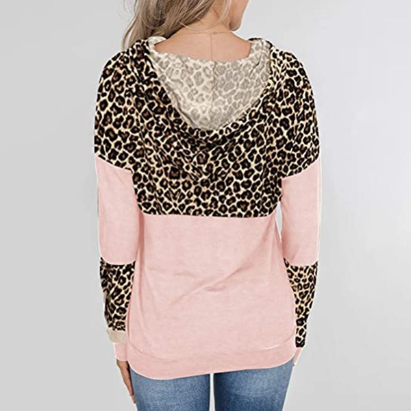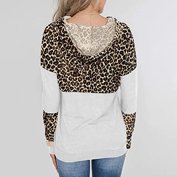 Fashion Leopard Spliced Long Sleeve Hooded Sweatshirt