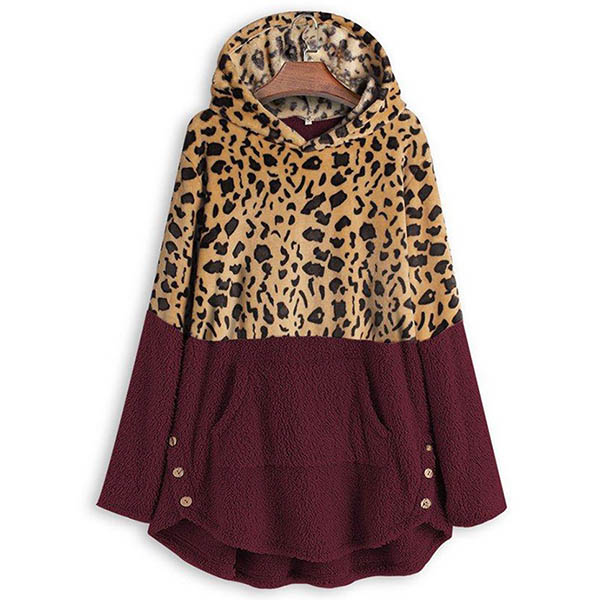 When the days get a little cold,this sweatshirt can be your wise choice. The sweatshirt is designed with leopard printed details,which can easily enhance its charm,while the hooded silhouette and plush fabric can offer you a warm and comfortable day. You can just match with a jeans to have laid-back yet fashionable autumn look!