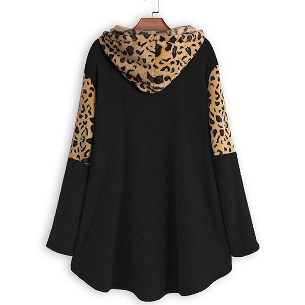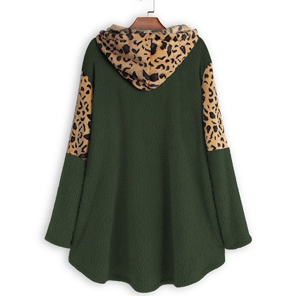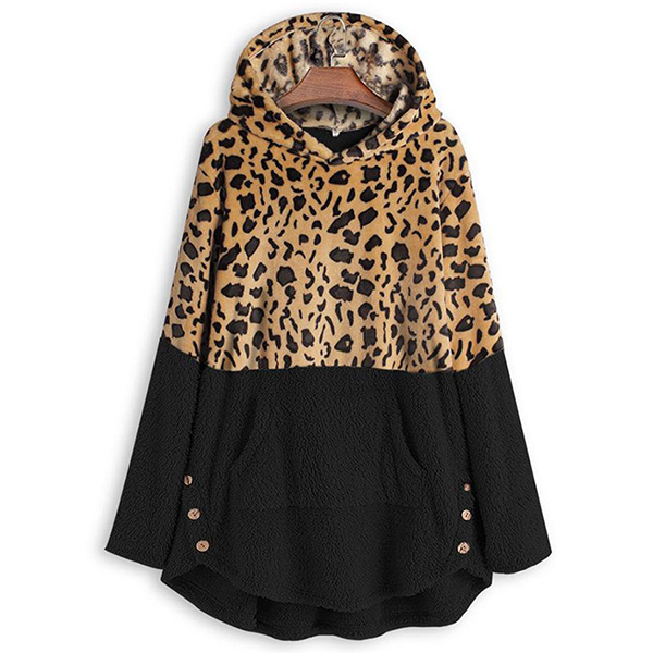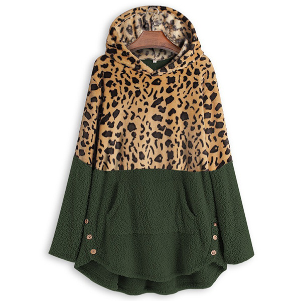 Fashion Leopard Spliced Long Sleeve Hooded Sweatshirt