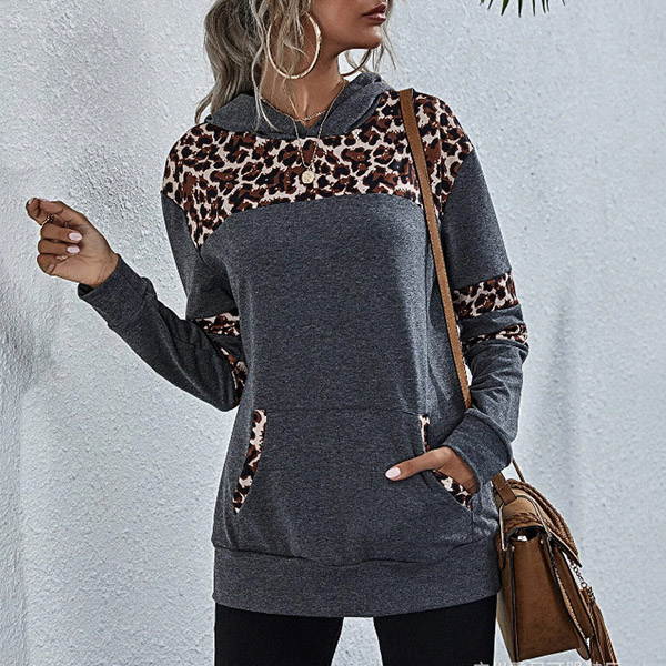 Make your wardrobe more complete by adding this sweatshirt. The leopard printed details will enrich the design style as well as boost its entire charm. Crafted from soft and breathable fabric,with long sleeve and hooded silhouette,this piece can offer you a laid-back and fashionable daily look by teaming with your favourite pants.