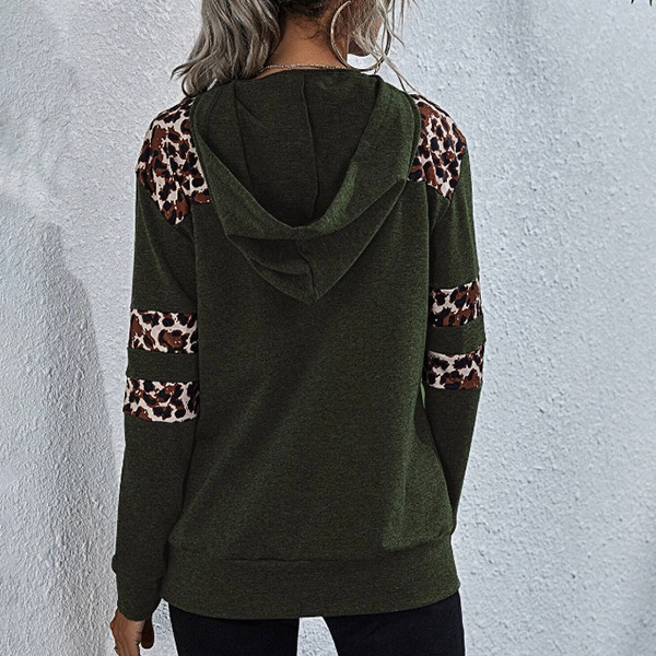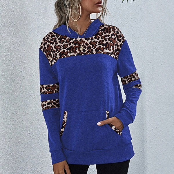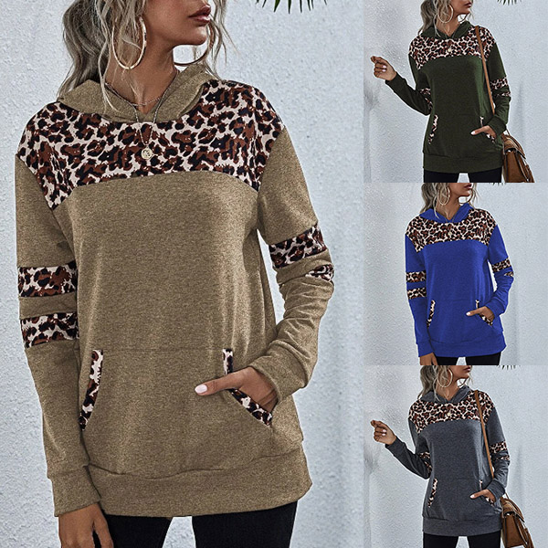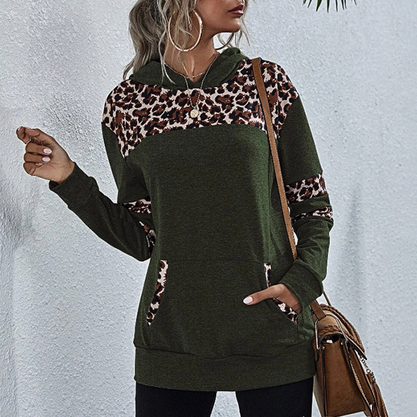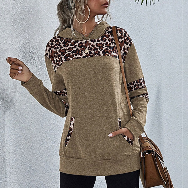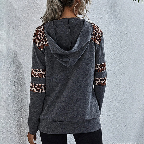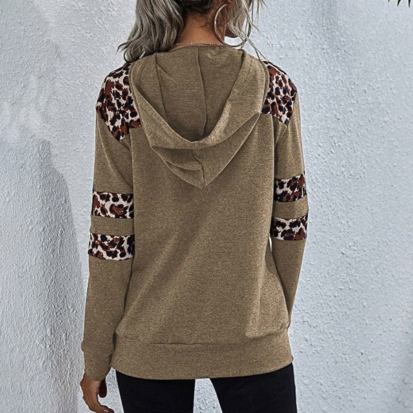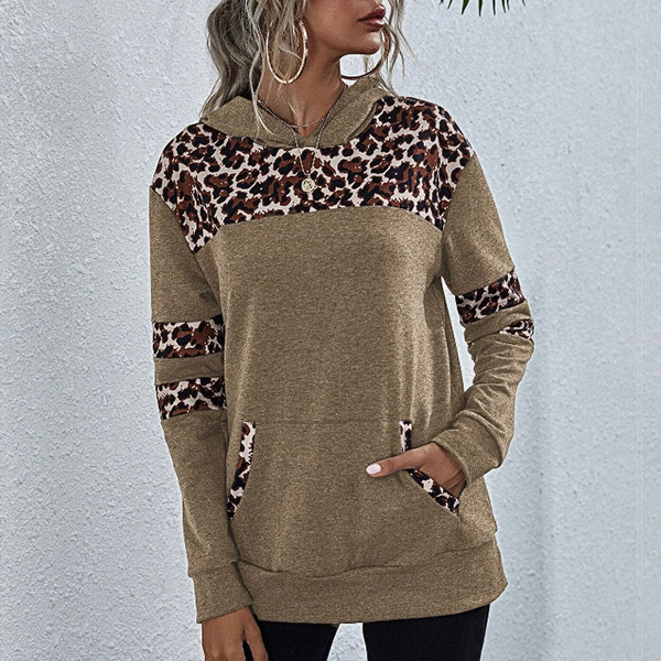 Fashion Leopard Spliced Long Sleeve Hooded Sweatshirt