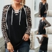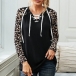 When you feel a little cold,this long sleeve top can easily strike your mind. The leopard spliced long sleeve and lace-up design at the neckline part make this piece look more attractive and stylish. You can simply matching with a jeans to have a simple,laid-back yet fashionable daily look.