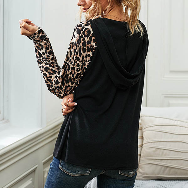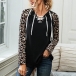 Fashion Leopard Spliced Long Sleeve Hooded Top