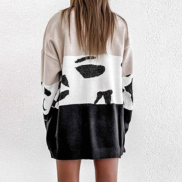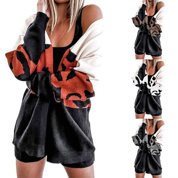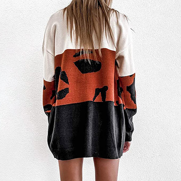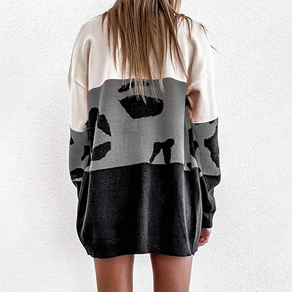Fashion Leopard Spliced Long Sleeve Loose Knit Cardigan
