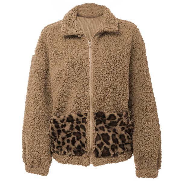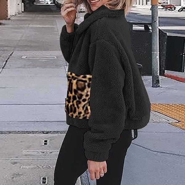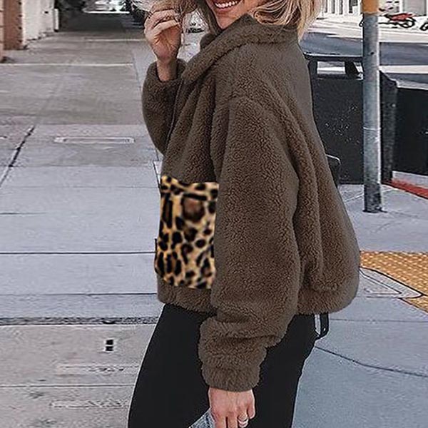 A must have staple piece in any girl's wardrobe,this plush coat is your perfect partner on those cold days. Finished with long sleeve,POLO collar and front zipper closure,simple yet stylish. Moreover,the leopard spliced design will be the highlight of this piece. Simply matching with your high waist tight pants and martin boots,you can look fashionable enough!