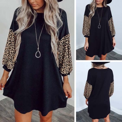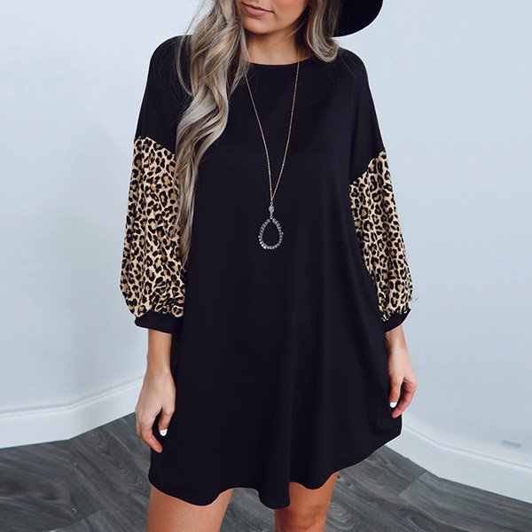 This dress is crafted from soft and breathable fabric,which can offer you a comfortable day. Moreover,the leopard printed spliced design at the sleeve part makes this piece look more eye-catching. Dress it up with your favourite heels for a beautiful look.