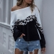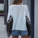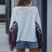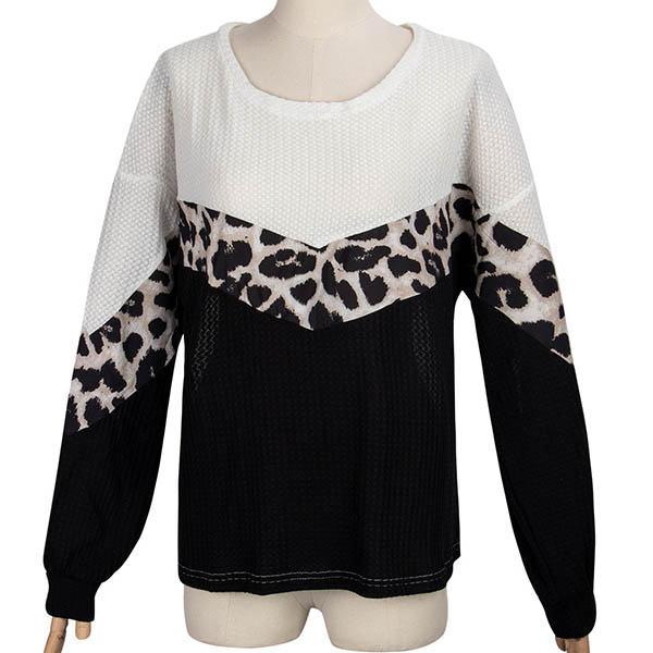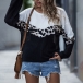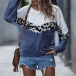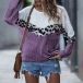 Fashion Leopard Spliced Long Sleeve Round Neck Contrast Color Knit Top