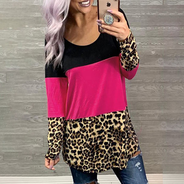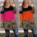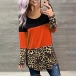 Fashion Leopard Spliced Long Sleeve Round Neck Contrast Color T-shirt