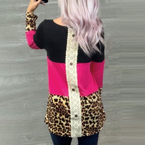 Don't like too simple and dull t-shirt? Then we suggest you making your eyes focused on this piece. The leopard printed details,lace spliced at the back side and contrast color design make this piece look so stylish and attractive. Crafted from soft and breathable fabric,with long sleeve and round neck design,this t-shirt can ensure you a wonderful day.