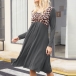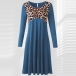 Fashion Leopard Spliced Long Sleeve Round Neck Dress