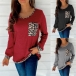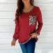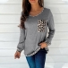 Fashion Leopard Spliced Long Sleeve Round Neck Knit Top