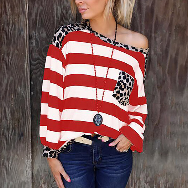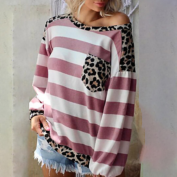 Combines of stripe and leopard element,this t-shirt can help you catch more eyes. Crafted from soft and breathable fabric,with long sleeve,round neck and a loose silhouette,this t-shirt also can ensure you a comfortable day. Your perfect choice on your casual days.