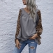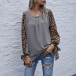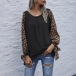 Fashion Leopard Spliced Long Sleeve Round Neck Loose T-shirt