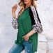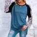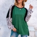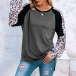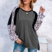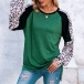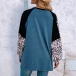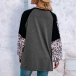 Fashion Leopard Spliced Long Sleeve Round Neck Slit Hem T-shirt