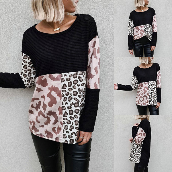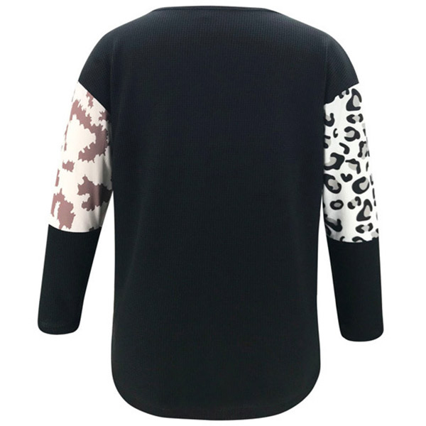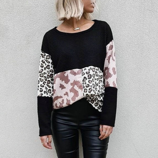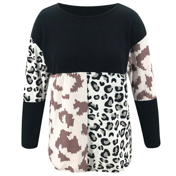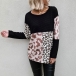 Fashion Leopard Spliced Long Sleeve Round Neck Sweater
