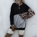 Fashion Leopard Spliced Long Sleeve Round Neck Sweatshirt
