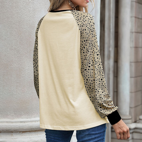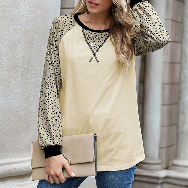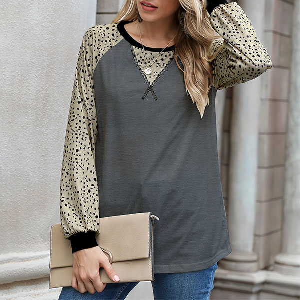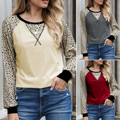 Don't like too simple and dull t-shirt? Then how about this piece? The leopard spliced details make this piece look more stylish and attractive. Crafted from soft and breathable fabric,with long sleeve and round neck design,this t-shirt can offer you a comfortable day. It is perfect fit for matching with different style bottoms.
