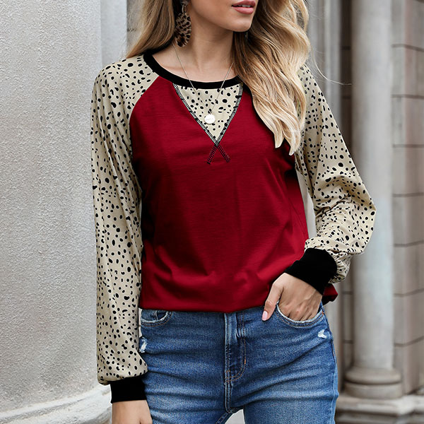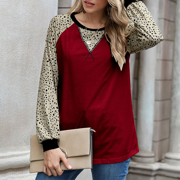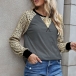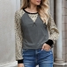 Fashion Leopard Spliced Long Sleeve Round Neck T-shirt