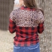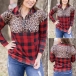 Fashion Leopard Spliced Long Sleeve Stand Collar Plaid Sweatshirt
