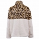Fashion Leopard Spliced Long Sleeve Stand Collar Plush Sweatshirt