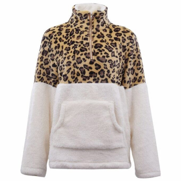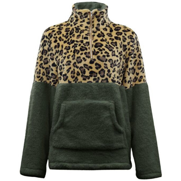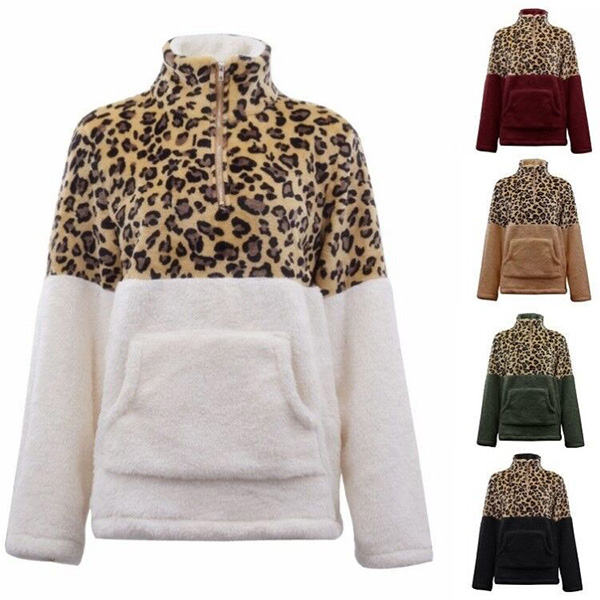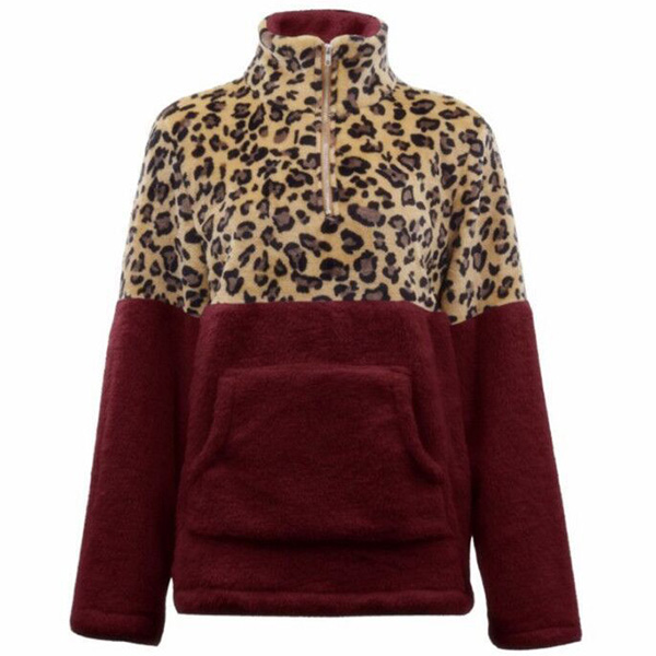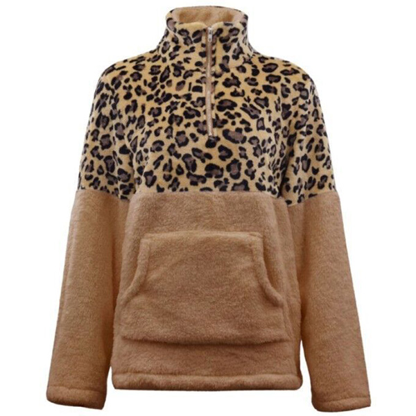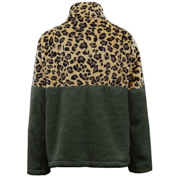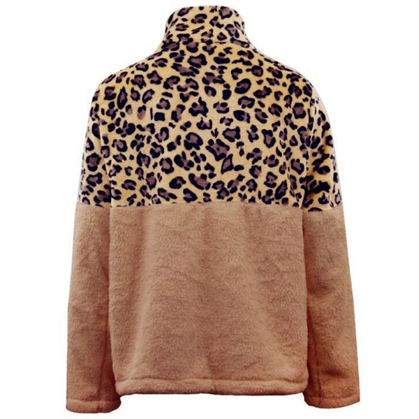 When the days get cold,you can just slip into this plush sweatshirt to stay warm. The leopard printed details make this piece look more eye-catching and stylish,while the stand collar and plush fabric design can ensure you a warm and comfortable day. Give your wardrobe a seasonal update by adding this piece.