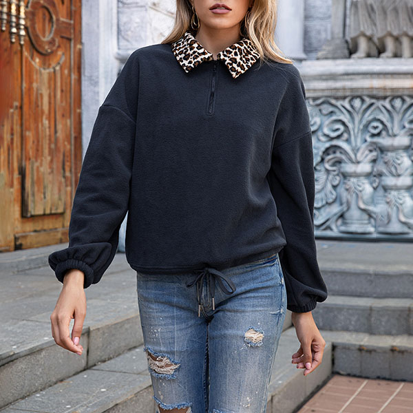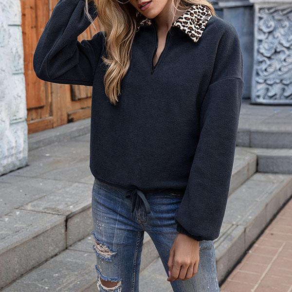 For each fashion girl, her wardrobe needs full of coats in different styles. Your eyes will immediately light up by this piece. The special leopard spliced details at the collar make this piece look more distinctive and attractive. Finished with long sleeve,stand collar and plush fabric,this sweatshirt is perfect fit for you when the days get cold.
