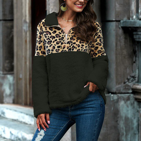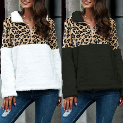 Give your wardrobe a seasonal update by adding this sweatshirt. The leopard printed details will make this piece look more stylish and attractive,while the long sleeve,stand collar and plush fabric can ensure you a warm day. It is perfect fit for you in these cold days.