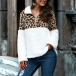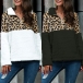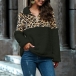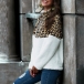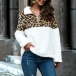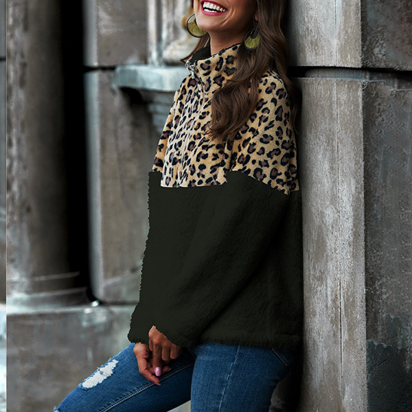 Fashion Leopard Spliced Long Sleeve Stand Collar Plush Sweatshirt