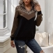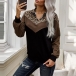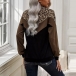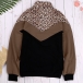 Fashion Leopard Spliced Long Sleeve Stand Collar Sweatshirt