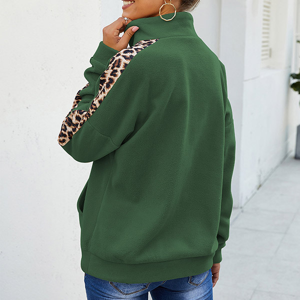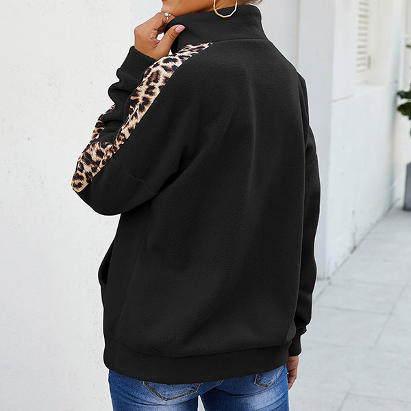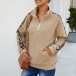 Fashion Leopard Spliced Long Sleeve Stand Collar Sweatshirt