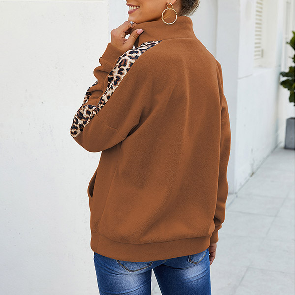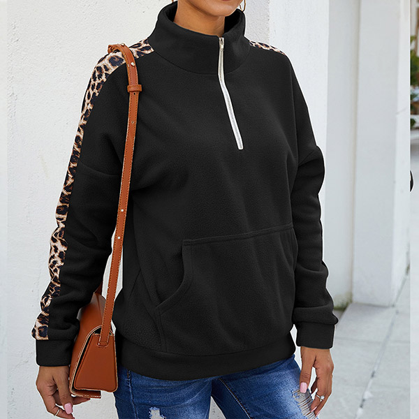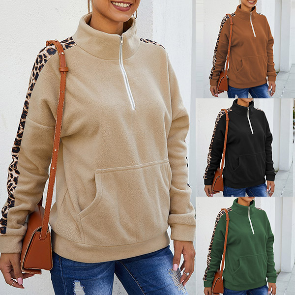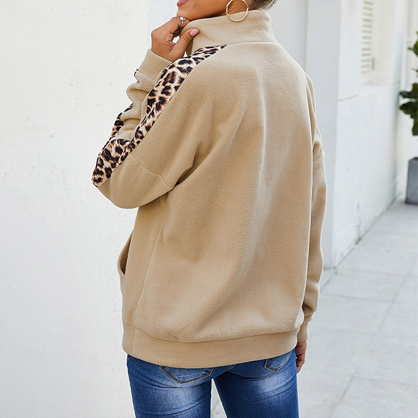 Hey,girls,you can enjoy your autumn days if you have this sweatshirt in your wardrobe. It is finished with long sleeve and stand collar design,classic,cozy yet stylish. While the leopard printed details will make this piece look more attractive. So why not take interest in this piece?