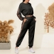 Fashion Leopard Spliced Long Sleeve Top + Pants Two-piece Set