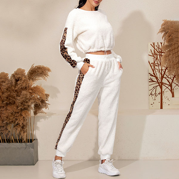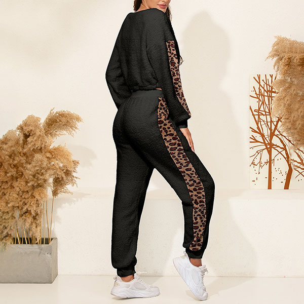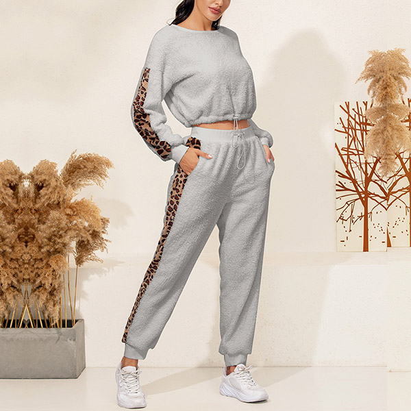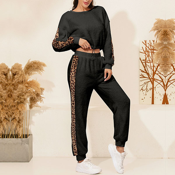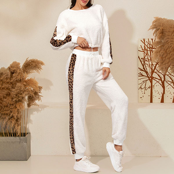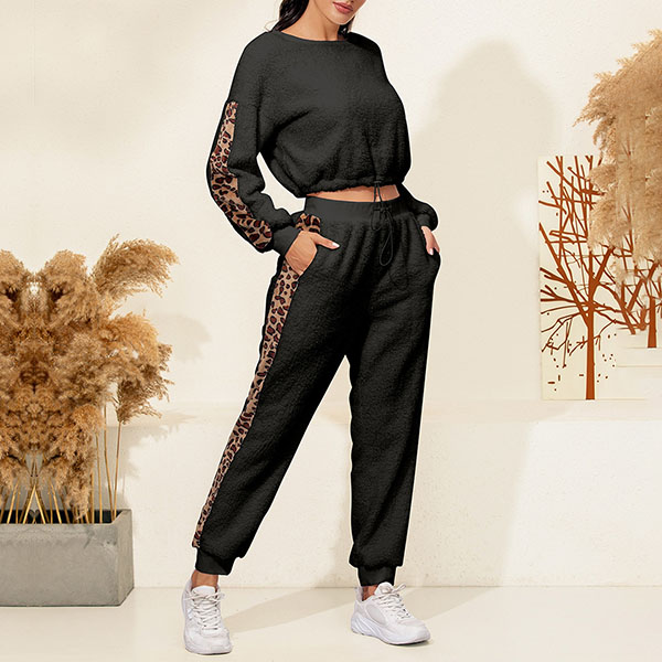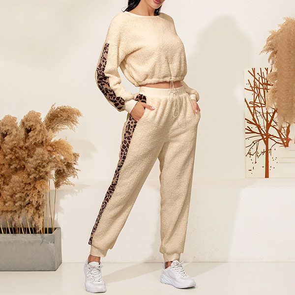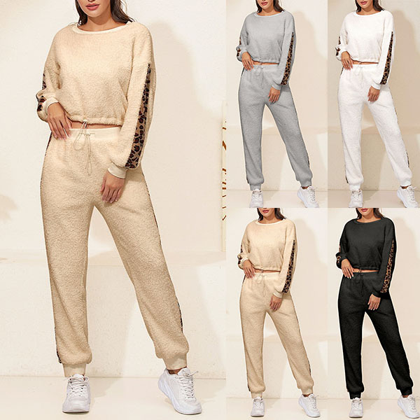 Hey,girls,you can trust in this two-piece set to exude your style and personality while it maintains a casual and relaxed style. The leopard printed details will make it look more attractive. Including a long sleeve round neck top and a pants,this two-piece set is perfect fit for you when the days get a little cold.