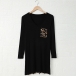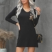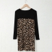 Fashion Leopard Spliced Long Sleeve V-neck Knee-length Dress