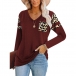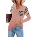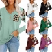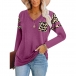 Fashion Leopard Spliced Long Sleeve V-neck Loose T-shirt