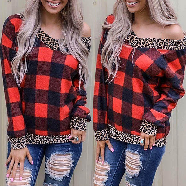 When the autumn season hits,this sweatshirt would be your wise choice. The leopard printed details and plaid element design will make this piece look more stylish and attractive. Finished with long sleeve and v-neck design,this piece can offer you a laid-back yet fashionable autumn look by teaming with a jeans.