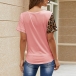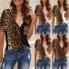Fashion Leopard Spliced Short Sleeve Knotted Hem Top