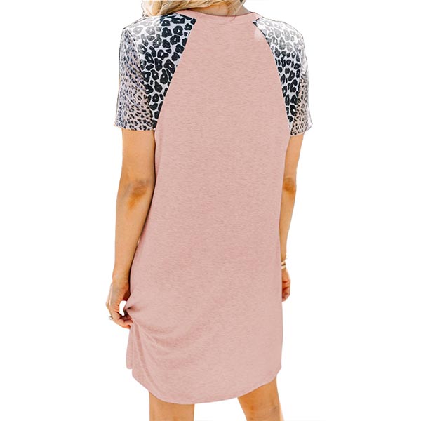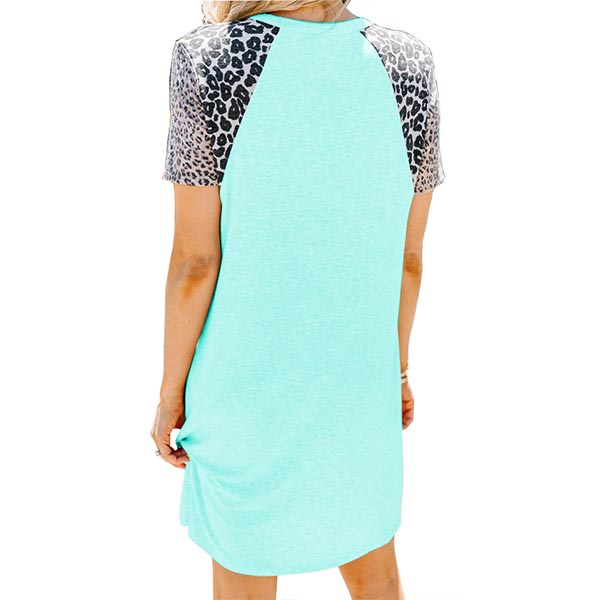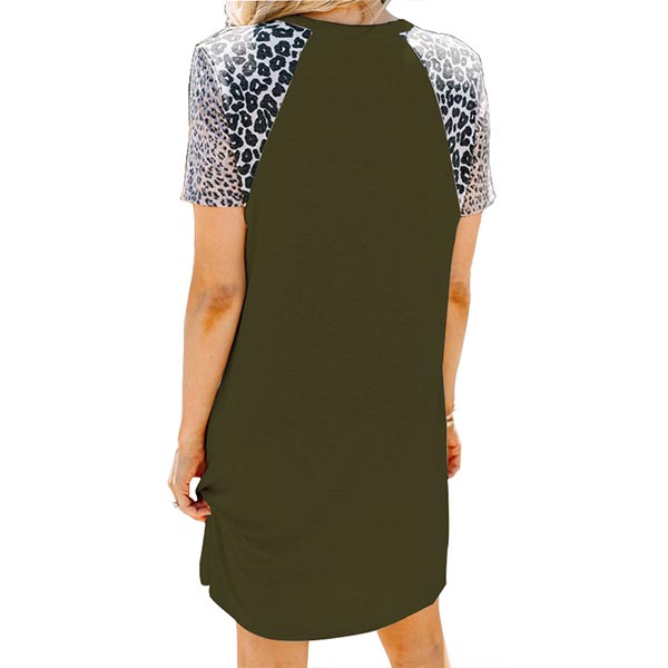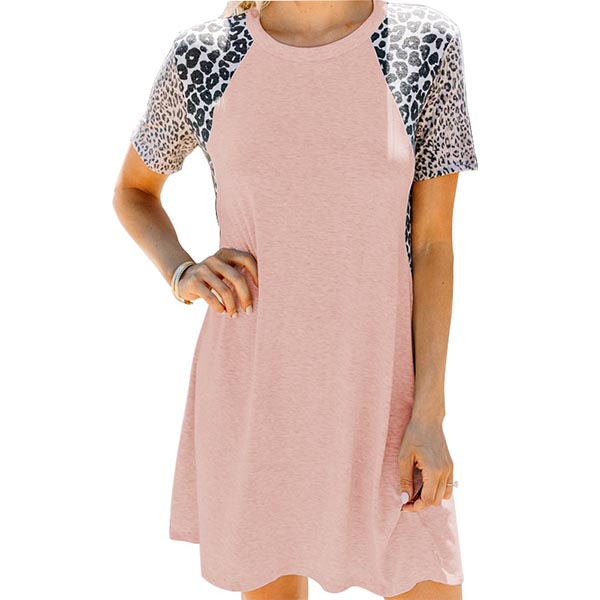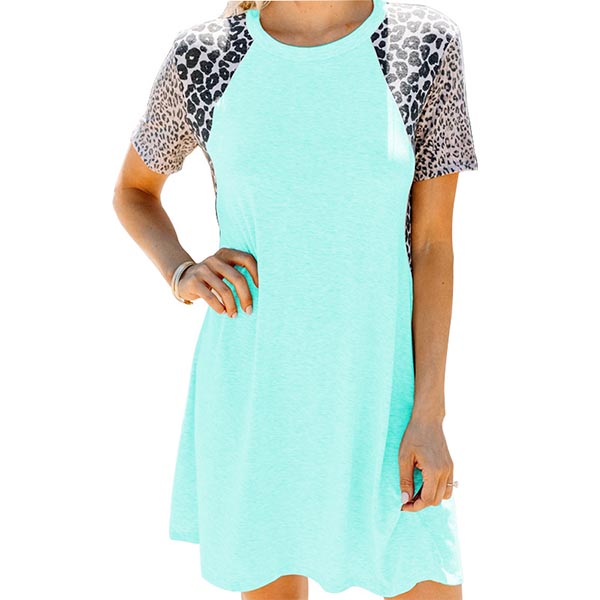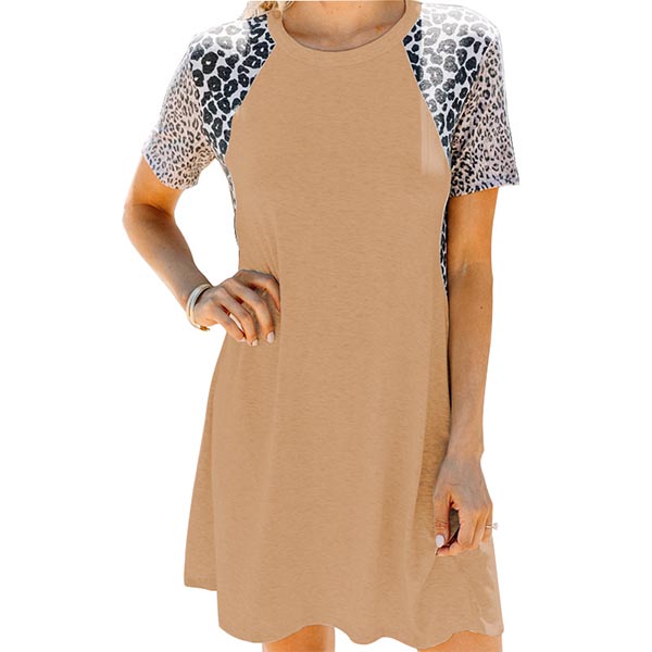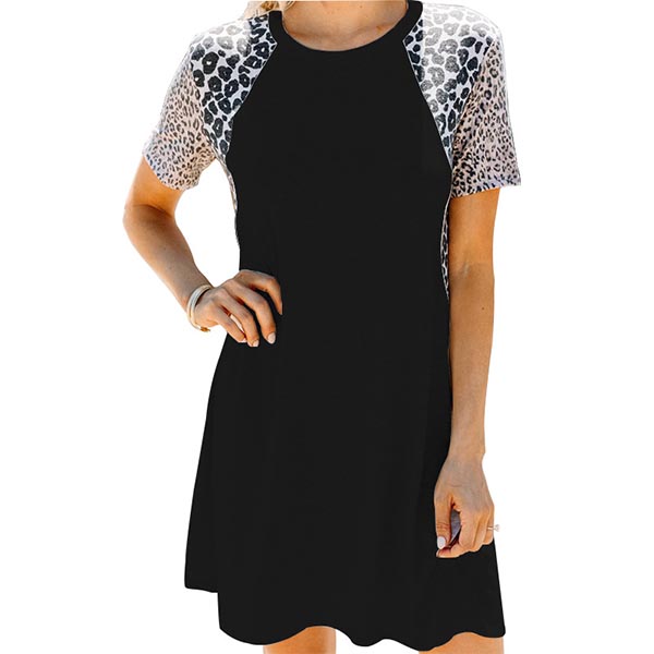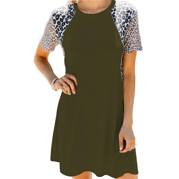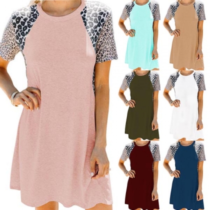 On your rushed mornings,you must have no time to think about what to wear. So we suggest you this easy-to-wear dress. The leopard spliced short sleeve design will enrich the design style,while its soft,breathable fabric can give you a comfortable day. Different colors for your optional.